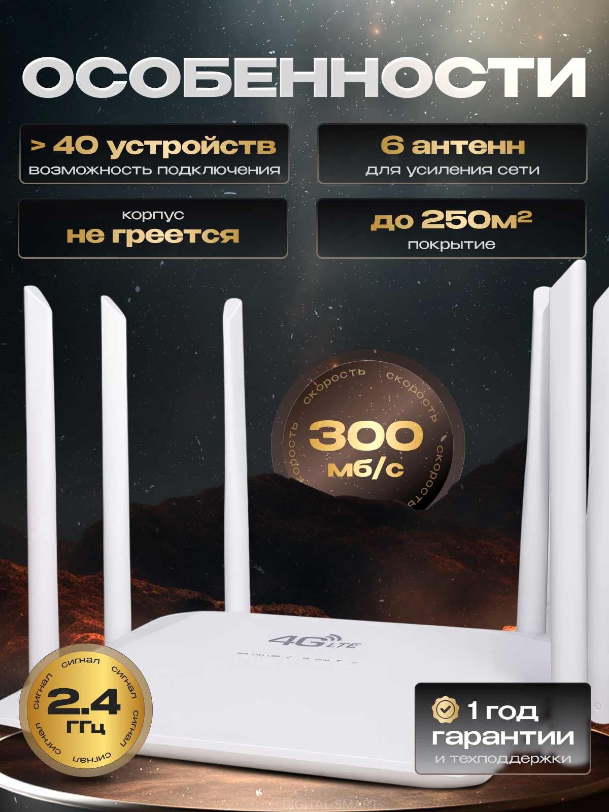 Представляем вашему вниманию роутер Wifi с поддержкой сим-карт 4G от Digital Smart – идеальное решение для создания надежной беспроводной сети в любом месте. Этот роутер обеспечит быстрое и стабильное подключение к интернету, где бы вы ни находились. Будь вы дома, на даче или в путешествии, устройство гарантирует высокую скорость передачи данных и отличное качество связи.