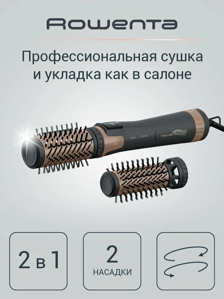 Rowenta Фен-щетка для волос Brush Activ Dunes CF9528F0 1000 Вт, скоростей 2, кол-во насадок 2, золотой, коричневый: сравнение цен, характеристики, фото, актуальное наличие и цены.
