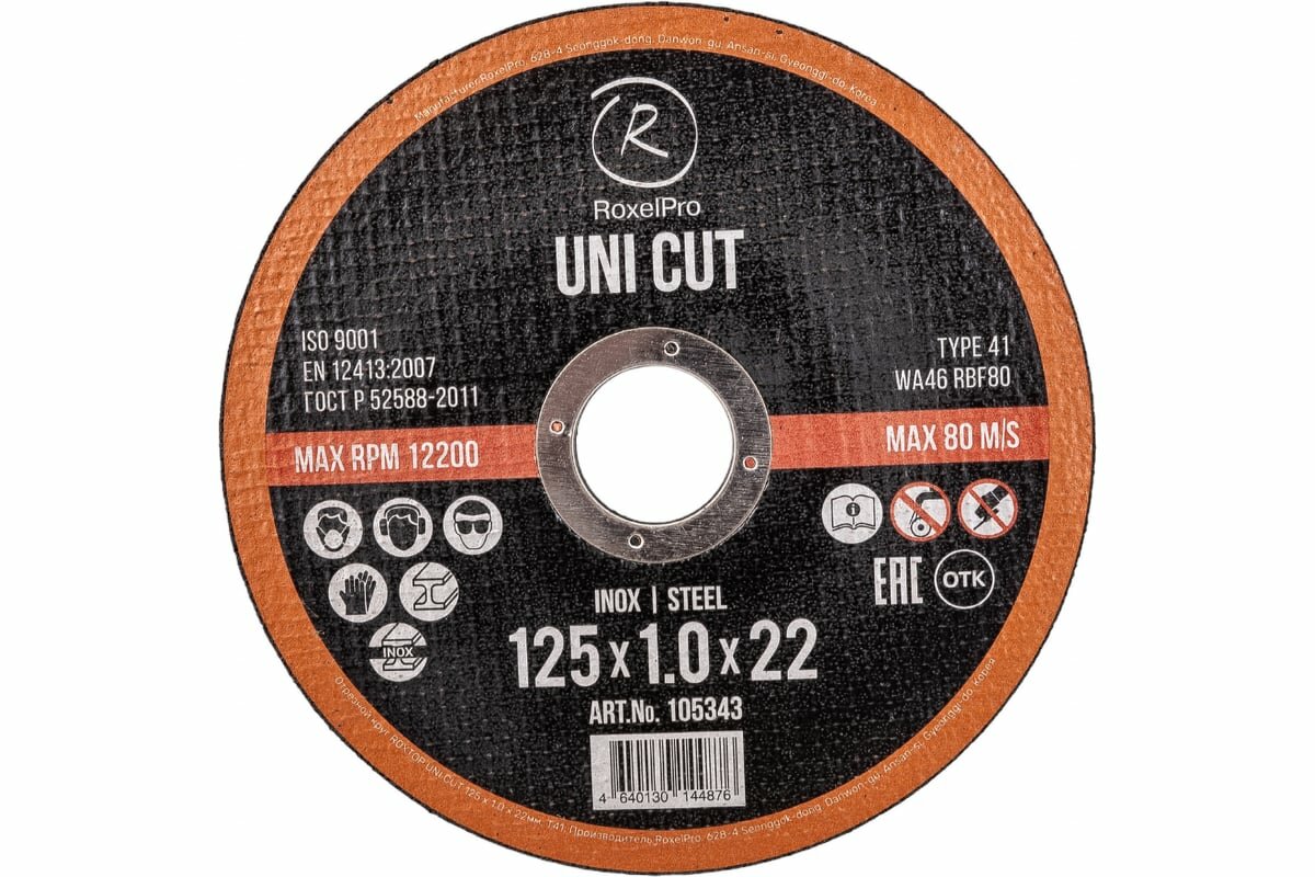 Отрезной круг RoxelProROXTOP UNI CUT, 125 x 1.0 x 22мм, Т41, 50шт. / упак.: сравнение цен, характеристики, фото, актуальное наличие и цены.