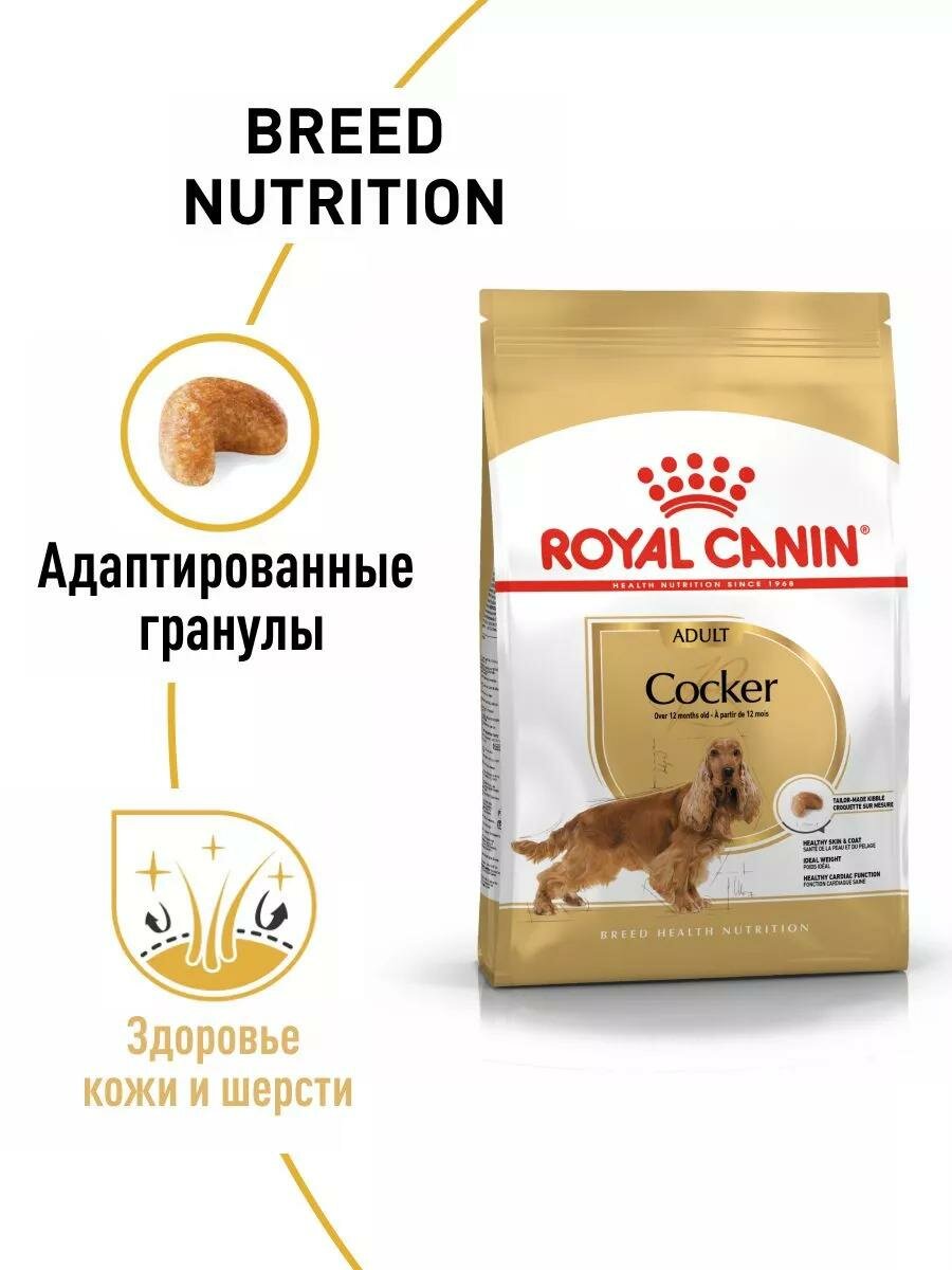 Корм сухой полнорационный для собак - Cпециально для взрослых и стареющих собак породы английский или американский кокер спаниель в возрасте 12 месяцев и старше Cocker Adult (Кокер Эдалт) Royal Canin, подходящий для собак породы кокер-спаниель в возрасте от 12 месяцев, специально разработан с учетом потребностей вашей собаки в питательных веществах. Сухой корм Роял Канин для кокер спаниеля поддерживает здоровье кожи, красоту шерсти благодаря жирным кислотам Омега-3, маслу огуречника. Роял Канин для средних пород содержит жиры, белки и L-карнитин, для поддержания оптимального веса. Royal Canin Cocker Adult (Кокер Эдалт) поддерживает здоровье сердца благодаря комбинации таурина, L-карнитина, антиоксидантов и жирных кислот. Корм сухой полнорационный для собак английский/американский кокер спаниель поддерживает зрение за счет лютеина. Гранулы Royal Canin созданы специально для собак породы кокер-спаниель. За счет минеральных веществ и текстуры гранул продукт ограничивает образование зубного камня и поддерживает здоровье зубов. Состав: злаки, дегидратированные белки животного происхождения (птица), изолят растительных белков*, животные жиры, мука из зерновых культур, гидролизат белков животного происхождения (вкусоароматические добавки), растительная клетчатка, рыбий жир, минеральные вещества, оболочка семян подорожника, соевое масло, фрукто-олиго-сахариды, гидролизат дрожжей (источник маннановых олиго-сахаридов), масло огуречника аптечного, экстракты зеленого чая (источник полифенолов), глюкозамин, экстракт бархатцев прямостоячих (источник лютеина), гидролизат из панциря ракообразных (источник ходроитина). Добавки (в 1 кг): Питательные добавки: Витамин A: 30500 ME, Витамин D3: 800 ME, Железо: 39 мг, Йод: 3,9 мг, Медь: 12 мг, Марганец: 51 мг, Цинк: 153 мг, Ceлeн: 0,08 мг, - Консерванты - Антиокислители. Содержание питательных веществ: Белки: 25,0 % - Жиры: 14,0 % - Зола: 5,0 % - Клетчатка пищевая: 1,4 % - В 1 кг: EPA & DHA: 0,4% - Триполифосфат натрия: 0,35%.