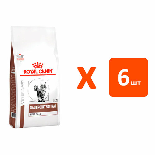 ROYAL CANIN GASTROINTESTINAL HAIRBALL для взрослых кошек при заболеваниях желудочно-кишечного тракта для вывода шерсти (2 кг х 6 шт): сравнение цен, характеристики, фото, актуальное наличие и цены.