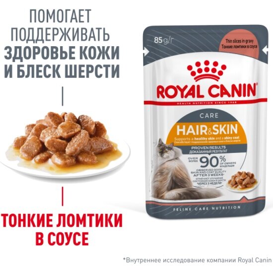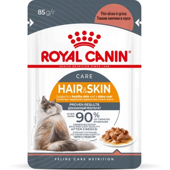 Здоровье и функция мочевыделительной системы также поддерживаются благодаря ROYAL CANIN® Hair and Skin в соусе. Для удовлетворения индивидуальных предпочтений каждой кошки ROYAL CANIN® Hair and Skin выпускается также в виде сухого корма.