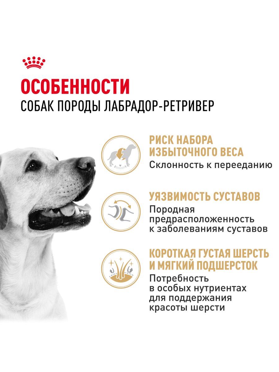 Формула сухого продукта ROYAL CANIN® Labrador Retriever Adult (лабрадор ретривер эдалт) поддерживает оптимальный вес, здоровье кожи и красоту шерсти, здоровье костей и суставов.