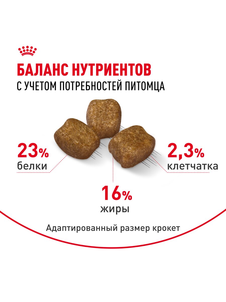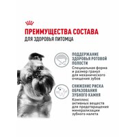 Корм сухой полнорационный для взрослых и стареющих собак мелких размеров (весом от 1 до 10 кг) в возрасте 10 месяцев и старше, предрасположенных к чувствительности зубов и десен Mini Dental Care (Мини Дентал Кэа) Royal Canin, подходящий для собак мелких размеров с повышенной чувствительностью зубов в возрасте от 10 месяцев до 8 лет, специально разработан с учетом потребностей вашей собаки в питательных веществах. Формула сухого корма Роял Канин поддерживает здоровье чувствительных зубов и мочевыделительной системы собак мелких пород. Некоторые собаки более склонны к накоплению зубного камня. После еды остатки пищи образуют тонкий слой зубного налета, покрывающий зубы. Со временем зубной налет кальцифицируется, превращаясь в зубной камень. За счет содержания хелатора кальция и специально подобранной текстуре гранул, которая оказывает чистящее воздействие, Сухой корм Роял Канин Дентал для собак мелких пород помогает ограничить образование зубного камня и поддерживает здоровье зубов. Сухой корм Royal Canin для собак мелких пород способствует профилактике заболеваний мочевыделительной системы за счет сбалансированного содержания минералов и поддержания рН мочи. Состав: мука из зерновых культур, дегидратированные белки животного происхождения (птица), злаки, животные жиры, растительная клетчатка, гидролизат белков животного происхождения (вкусоароматические добавки), минеральные вещества Добавки (в 1 кг): Питательные добавки: Витамин A: 15500 ME, Витамин D3: 1000 ME, Железо: 39 мг, Йод: 3,9 мг, Медь: 12 мг, Марганец: 51 мг, Цинк: 152 мг, Ceлeн: 0,06 мг - Технологические добавки: Клиноптилолит осадочного происхождения: 10 г - Консерванты - Антиокислители. Содержание питательных веществ: Белки: 23,0 % - Жиры: 16,0 % - Зола: 7,1 % - Клетчатка пищевая: 2,3 % - Триполифосфат натрия: 3,5 г/кг.