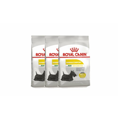 Корм сухой полнорационный для взрослых и стареющих собак мелких размеров (весом от 1 до 10 кг) в возрасте 10 месяцев и старше, при раздражениях и зуде кожи, связанных с повышенной чувствительностью Mini Dermacomfort (Мини Дермакомфорт) Royal Canin, подходящий для собак мелких размеров с чувствительной кожей в возрасте от 10 месяцев до 8 лет, специально разработан с учетом потребностей вашей собаки в питательных веществах. Формула сухого продукта Royal Canin поддерживает здоровье кожи и красоту шерсти, а также снижает риск аллергии у собак мелких пород. Обогащенный полиненасыщенными жирными кислотами (Омега-3 и Омега-6), сухой корм Royal Canin для собак мелких пород поддерживает красоту шерсти, а комплекс витаминов группы Роян Канин помогает усилить барьерную функцию кожи и обеспечить ее здоровье. Сухой корм Royal Canin отличается тщательно подобранным составом, что снижает риск аллергии. Состав: злаки, изолят растительных белков*, животные жиры, очищенный овес, гидролизат белков животного происхождения (вкусоароматические добавки), минеральные вещества, соевое масло, растительная клетчатка, рыбий жир, льняное семя, фруктоолигосахариды, масло огуречника аптечного, экстракт бархатцев прямостоячих (источник лютеина). Добавки (в 1 кг): Питательные добавки: Витамин A: 29500 ME, Витамин D3: 800 ME, Железо: 59 мг, Йод: 5,1 мг, Медь: 13 мг, Марганец: 64 мг, Цинк: 198 мг, Ceлeн: 0,15 мг - Технологические добавки: Клиноптилолит осадочного происхождения: 5 г - Консерванты - Антиокислители. Содержание питательных веществ: Белки: 26,0 % - Жиры: 17,0 % - Зола: 5,4 % - Клетчатка пищевая: 1,5 % - EPA & DHA: 0,41 % - Жирные кислоты Омега 6: 4,3 % - Жирные кислоты Омега 3: 1,1 %.