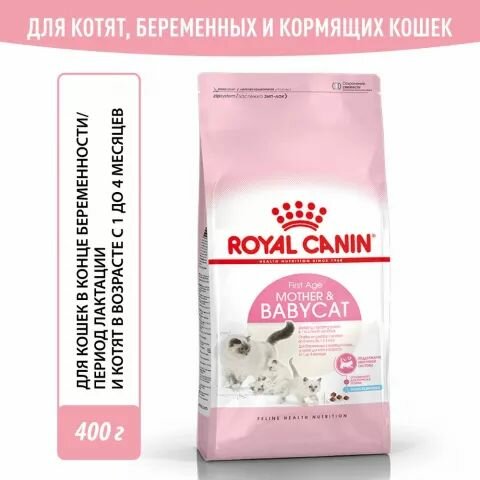 Royal Canin Mother and Babycat First Age Сухой корм для беременных, кормящих кошек и котят в возрасте от 1 до 4 месяцев, 400 г: сравнение цен, характеристики, фото, актуальное наличие и цены.