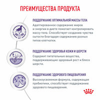 | Дополнительная информация | поддержание оптимальной массы тела, адаптированное содержание жиров и энергии в диете помогает контролировать массу тела; способствует созданию чувства сытости благодаря сочетанию разных типов клетчатки; поддержание здоровья кожи и шерсти, содержит питательные вещества, поддерживающие здоровый рост и блеск шерсти; поддержание здорового пищеварения, корм готов к употреблению, проследите, чтобы у вашей собаки всегда была свежая вода, номер серии, регистрационный номер завода-изготовителя и срок годности указаны на упаковке |