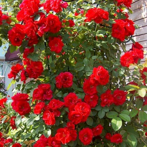 Роза Фламентанц (Flammentanz) – это плетистый сорт, который считается одним из самых престижных и привлекательных. Растение может вырастать до 3 м в длину и формировать куст с окружностью до 2 м, который утопает в обильной глянцевой листве насыщенного зеленого цвета. В период цветения с июня по июль, роза радует крупными махровыми цветами огненно – красного оттенка, диаметром до 10 см, состоящими из 38 – 40 лепестков и обладающими приятным ароматом. Этот кустарник отлично подходит для высадки рядом со стенами, позволяя скрыть неэстетичные или ветхие постройки. Также его можно красиво использовать для оформления беседок, заплетая его по опорным колоннам.