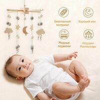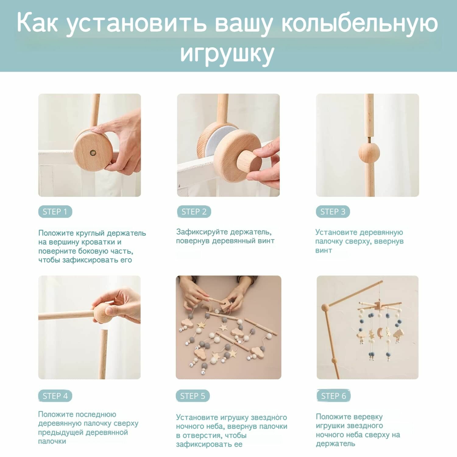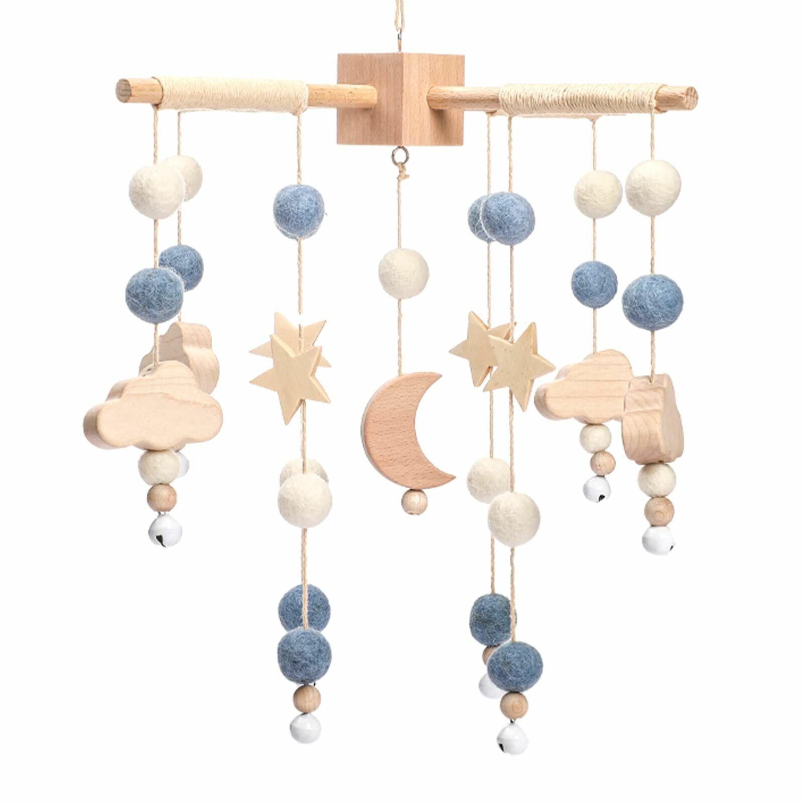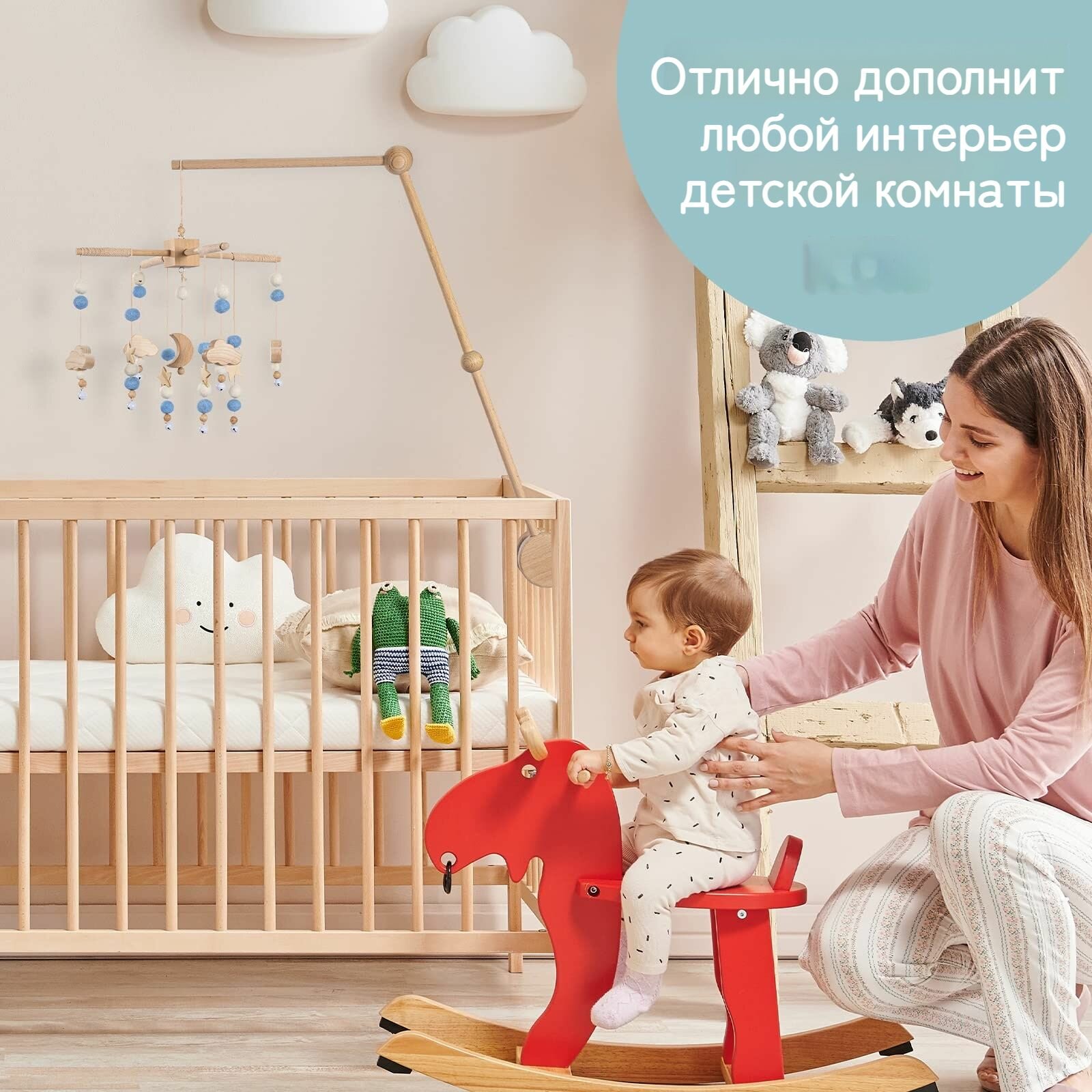 Деревянный Мобиль С Звездной Луной И Облачками Для Детской Кроватки В Комплекте С Деревянной Подставкой И Мягкими Шариками Из Фетра. Изготовлен Из Безопасных Материалов.: сравнение цен, характеристики, фото, актуальное наличие и цены.