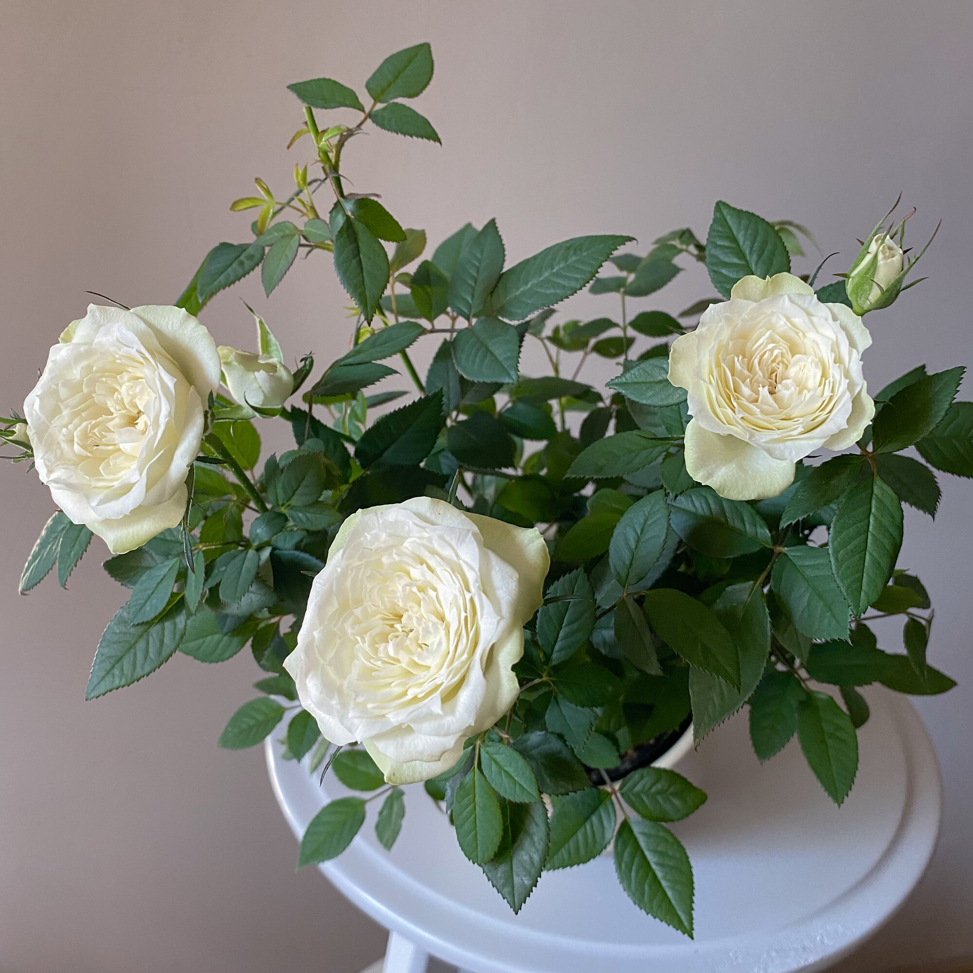 Купить Роза цветущая белая кустовая в горшке и керамическом кашпо, Veresk 608 с доставкой по всей России.