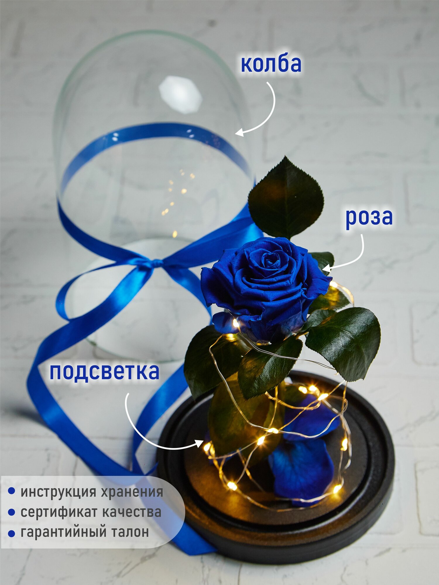 Роза в колбе живая, вечная, стабилизированная «M» 22 см, подарок на 8 марта, на день рождения, на свадьбу, Синий: сравнение цен, характеристики, фото, актуальное наличие и цены.