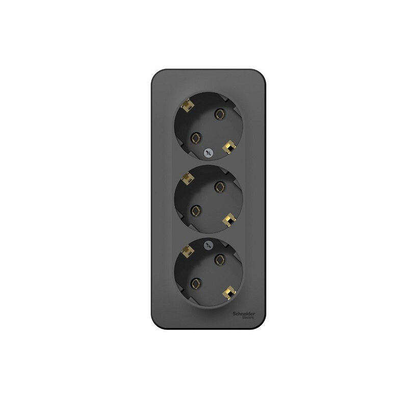 Розетка 3-местная ОП Blanca 16А IP20 250В с заземлением без защитных шторок с изолированной пластиной антрацит SchE BLNRA010316. Розетка Schneider Electric BLANCA (антрацит, открытой установки) трехместная, без шторок, с заземлением и изолирующей пластиной предназначена для сетей до 250В, на ток до 16А. Трехместная розетка позволяет подключить три устройства в одном месте. Заземление обеспечивает безопасность при косвенном прикосновении. Она изготовлена из ABS-пластика, проста в установке и удобна в применении.