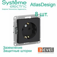 Купить 8 шт. Systeme Electric AtlasDesign Карбон, Розетка c заземлением со шторками, 16А, механизм, ATN001045 с доставкой по всей России.