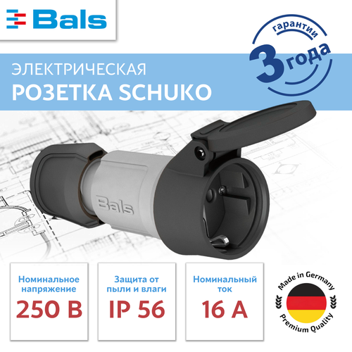 Серая розетка кабельная Шуко (Schuko), производство Германия, с номинальным током 16 Ампер, напряжение 250 Вольт, с заземлением (Система VDE).