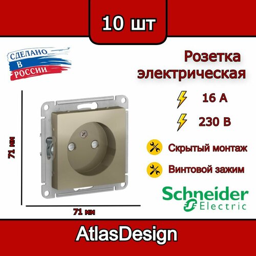 Розетка без заземления, со шторками, шампань Schneider Electric AtlasDesign (комплект 10шт): сравнение цен, характеристики, фото, актуальное наличие и цены.