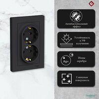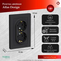 Розетка двойная карбон, с заземлением,16А, в сборе, Schneider Electric AtlasDesign (комплект 5шт): сравнение цен, характеристики, фото, актуальное наличие и цены.