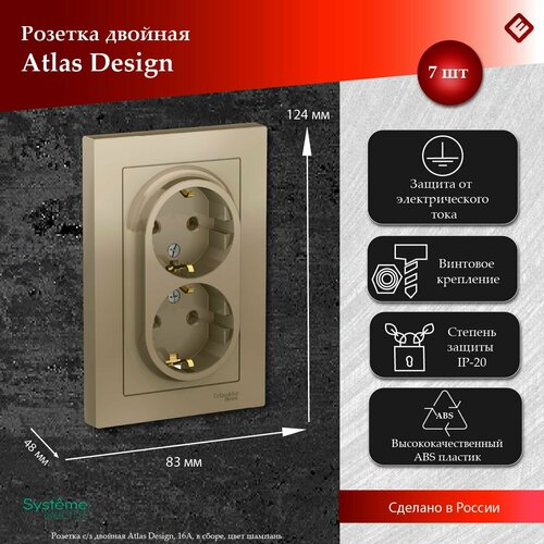 Купить Розетка двойная шампань, с заземлением,16А, в сборе, Schneider Electric AtlasDesign (комплект 7шт) с доставкой по всей России. Розетка двойная шампань, с заземлением,16А, в сборе, Schneider Electric AtlasDesign (комплект 7шт): сравнение цен, характеристики, фото, актуальное наличие и цены.