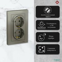 Розетка двойная сталь, с заземлением,16А, в сборе, Schneider Electric AtlasDesign (комплект 4шт): сравнение цен, характеристики, фото, актуальное наличие и цены.