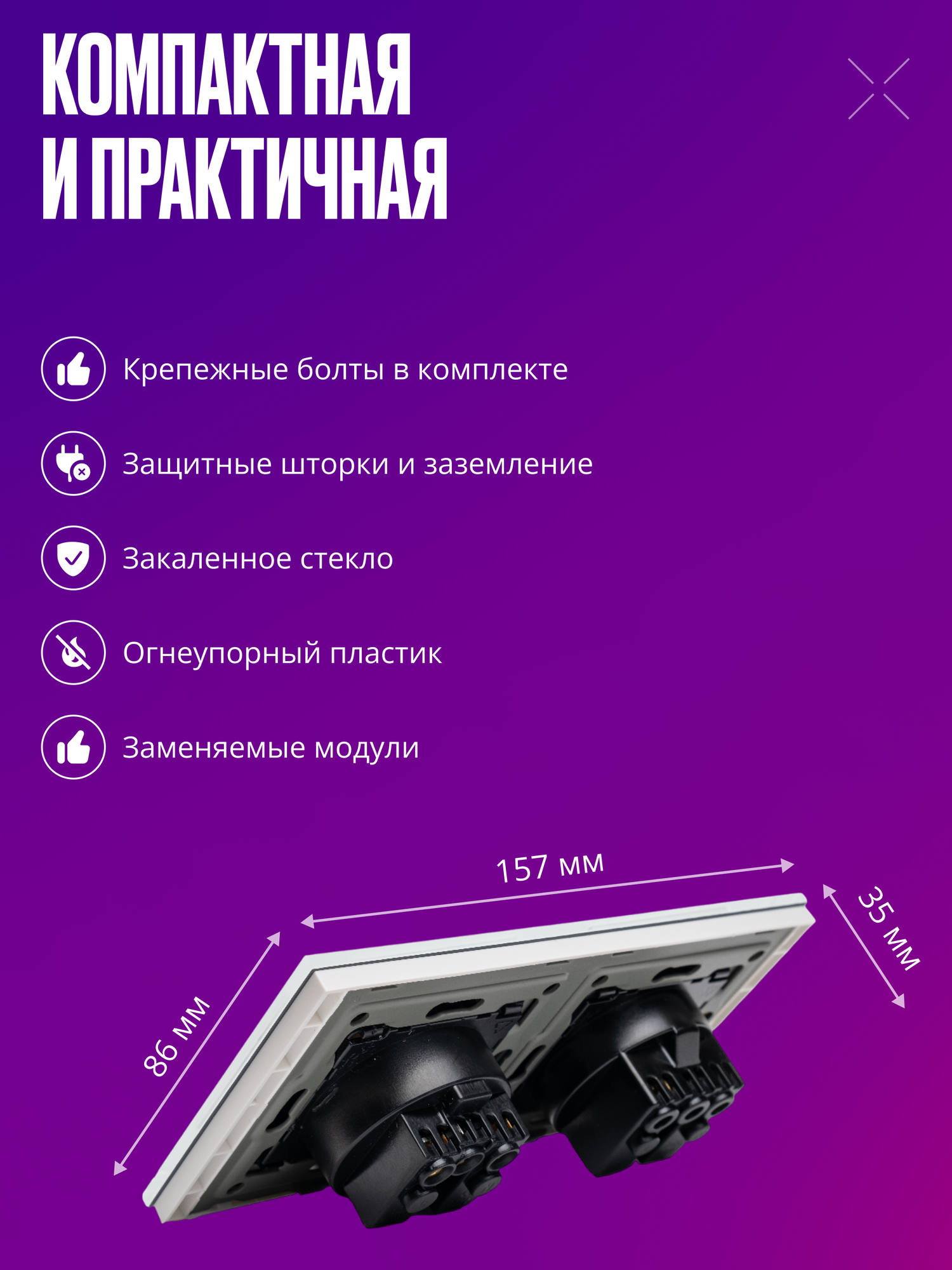 Розетка двойная встраиваемая на 16 А, 2 поста, белая со стеклянной рамкой, заземлением и шторками: сравнение цен, характеристики, фото, актуальное наличие и цены.