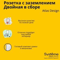 Розетка электрическая двухместная Systeme Electric Atlas Design с заземлением, в сборе 16А, Аквамарин ATN001124 — 10 шт.: сравнение цен, характеристики, фото, актуальное наличие и цены.