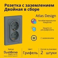Розетка электрическая двухместная Systeme Electric Atlas Design с заземлением, в сборе 16А, Грифель ATN000724 — 2 шт.: сравнение цен, характеристики, фото, актуальное наличие и цены.