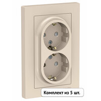 Купить Розетка двухпостовая, Systeme Electric AtlasDesign с заземлением, с защитными шторками, бежевый (комплект из 5 шт.) с доставкой по всей России.