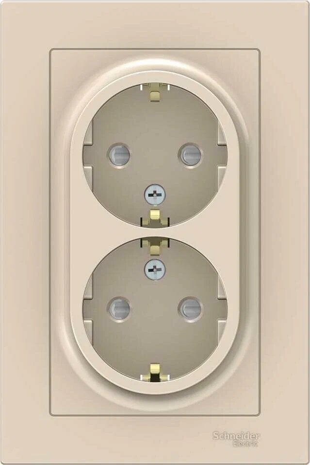 Розетка двухпостовая, Systeme Electric AtlasDesign с заземлением, с защитными шторками, бежевый (комплект из 5 шт.): сравнение цен, характеристики, фото, актуальное наличие и цены.