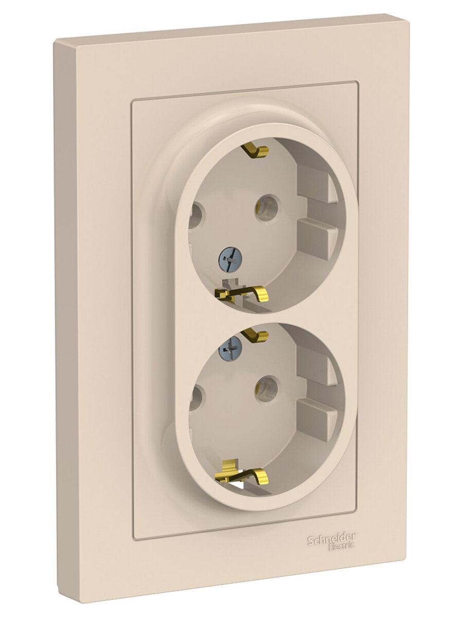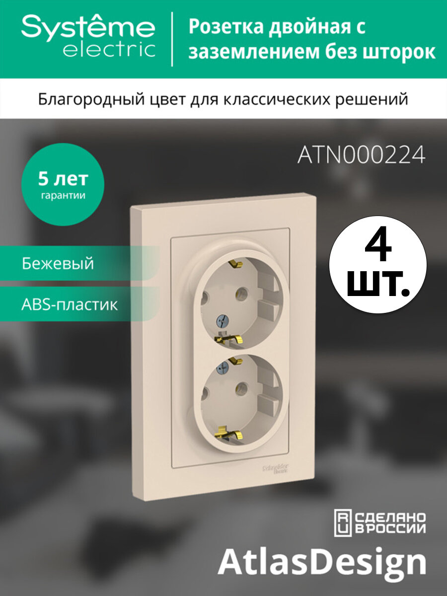 Розетка двухпостовая, в сборе Systeme Electric AtlasDesign с заземлением, 16А, бежевый (комплект из 4 шт.): сравнение цен, характеристики, фото, актуальное наличие и цены.