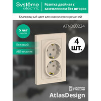 Купить Розетка двухпостовая, в сборе Systeme Electric AtlasDesign с заземлением, 16А, бежевый (комплект из 4 шт.) с доставкой по всей России.