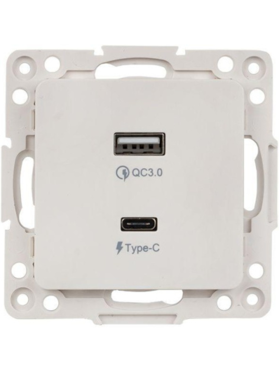 Розетка EKF PROxima "Стокгольм", белая, с 2 портами USB type-A и type-C
