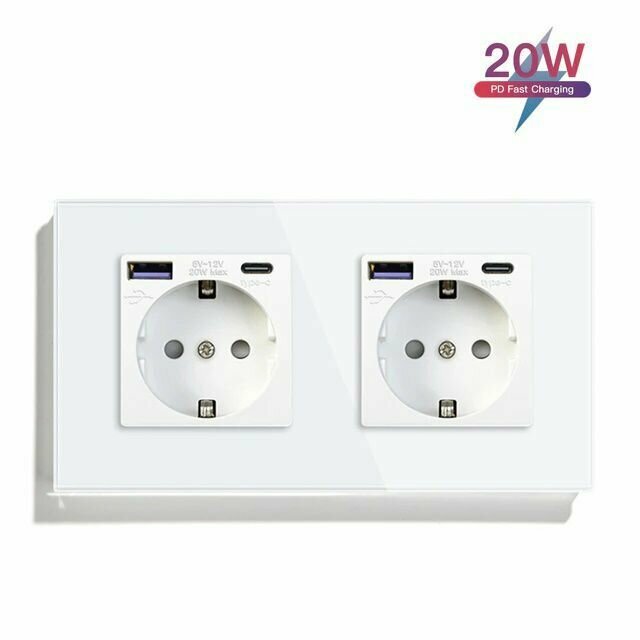 Розетка электрическая 2 поста с Usb/Type-C АC, быстрая зарядка 20W, цвет белый: сравнение цен, характеристики, фото, актуальное наличие и цены.