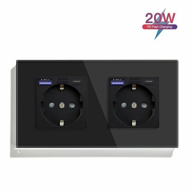 Розетка электрическая 2 поста с Usb/Type-C АC, быстрая зарядка 20W, цвет черный: сравнение цен, характеристики, фото, актуальное наличие и цены.