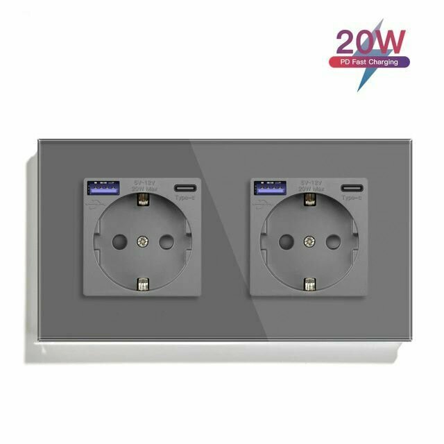 Розетка электрическая 2 поста с Usb/Type-C АC, быстрая зарядка 20W, цвет серый: сравнение цен, характеристики, фото, актуальное наличие и цены.