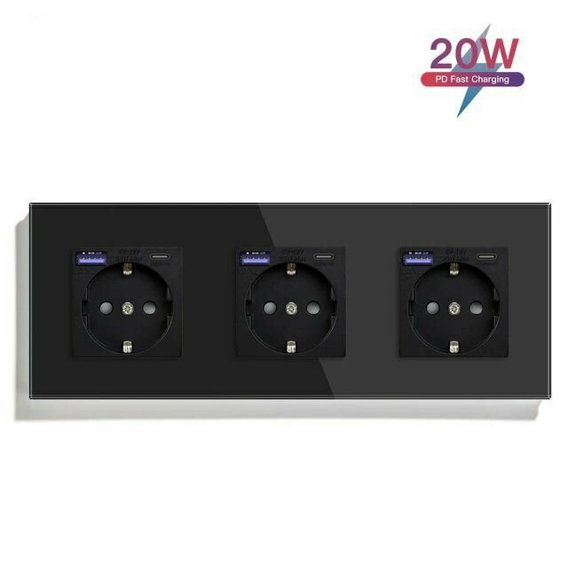 Розетка электрическая 3 поста с Usb/Type-C АC, быстрая зарядка 20W, цвет черный: сравнение цен, характеристики, фото, актуальное наличие и цены.