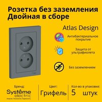 Купить Розетка электрическая двухместная Systeme Electric Atlas Design без заземления в сборе 16А, Грифель ATN000720 — 5 шт. с доставкой по всей России.