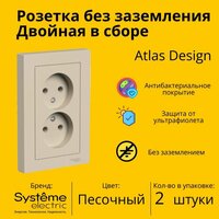 Розетка электрическая двухместная Systeme Electric Atlas Design без заземления в сборе 16А, Песочный ATN001220 — 2 шт.: сравнение цен, характеристики, фото, актуальное наличие и цены.