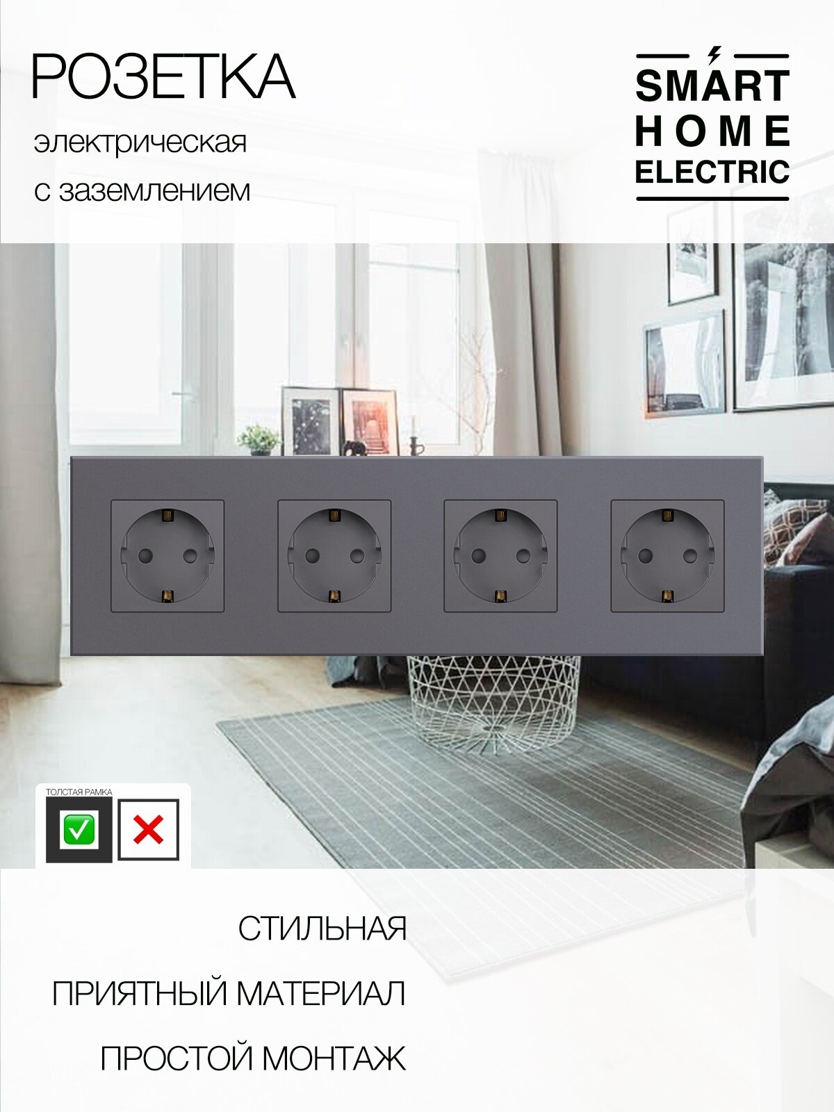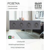 Розетка электрическая, с заземляющим контактом, ABS-пластик, серая, 4 гнезда: сравнение цен, характеристики, фото, актуальное наличие и цены.