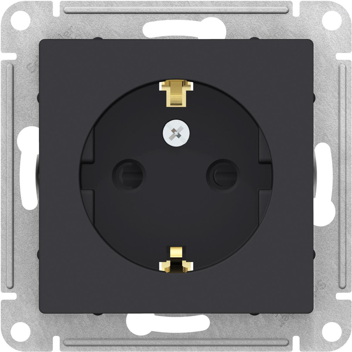 Купить Розетка электрическая со шторками Schneider Atlas Design (Карбон) на винтовых зажимах в комплекте 10 шт. с доставкой по всей России.