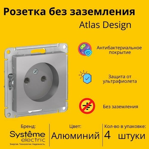 Розетка электрическая Systeme Electric Atlas Design без заземления, 16А Алюминий ATN000341 — 4 шт.: сравнение цен, характеристики, фото, актуальное наличие и цены.