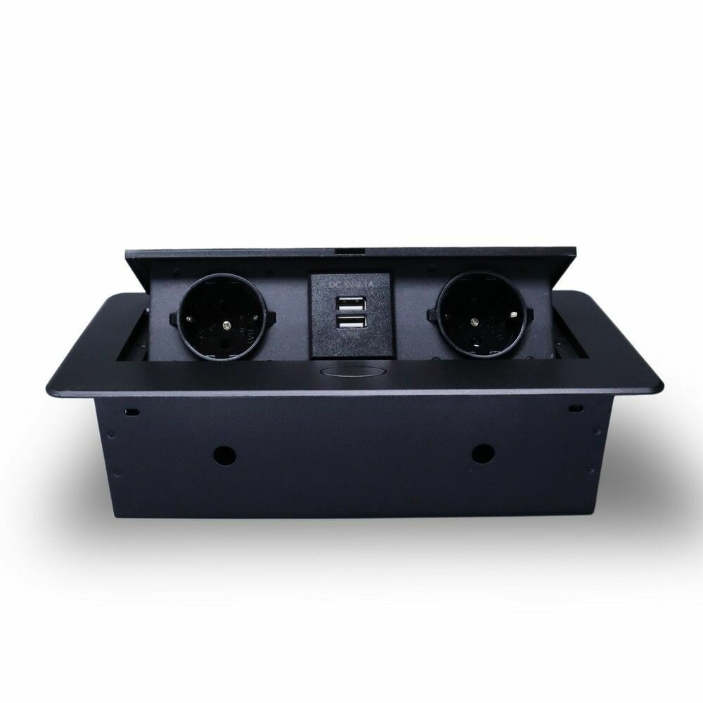 Купить ROCKETSOCKET Розетка горизонтальная выдвижная 2 euro 16a, 2 usb a с блоком 5в/2.1а , проводка, цвет черный SHS018-B с доставкой по всей России.