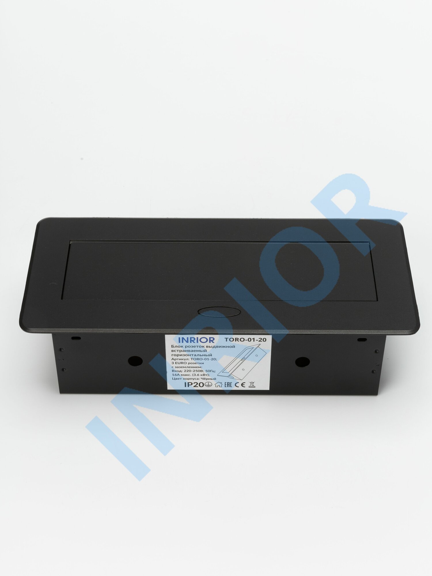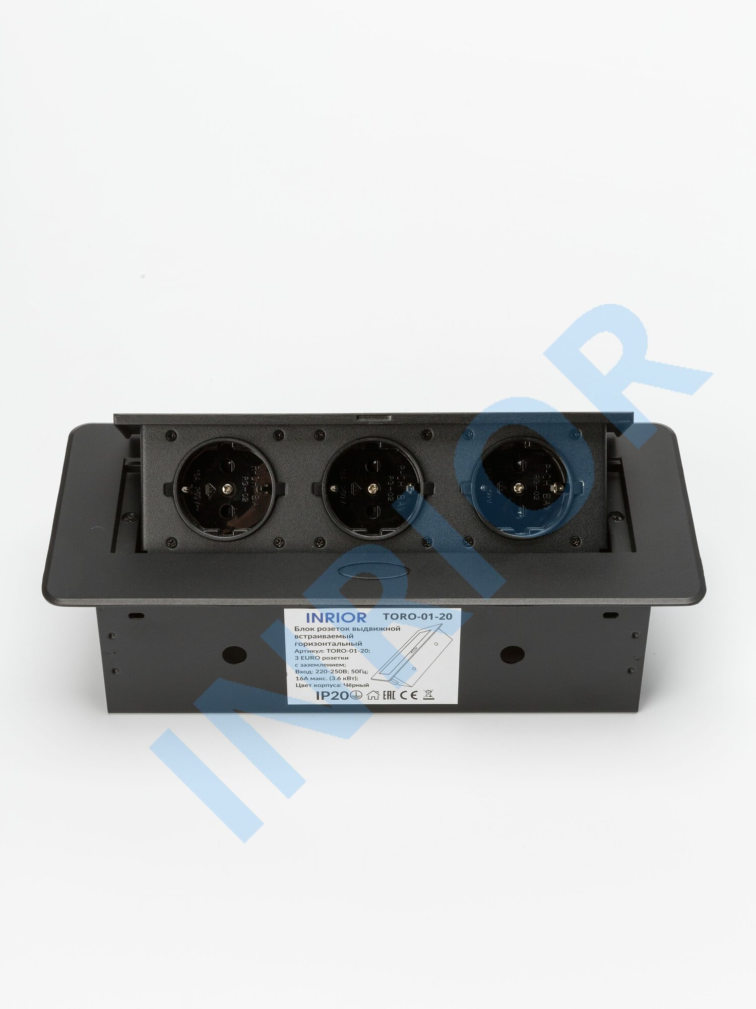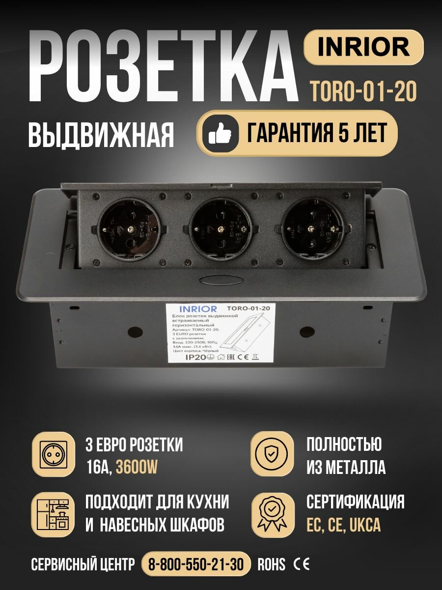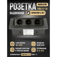 Модель: Inrior выдвижной встраиваемый блок розеток, на 3 euro розетки, без проводки, черный TORO-01-20