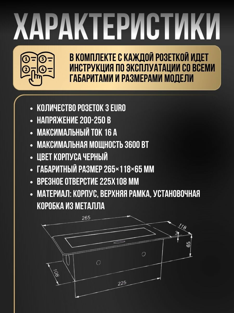Преимущества Inrior выдвижной встраиваемый блок розеток, на 3 euro розетки, без проводки, черный TORO-01-20
