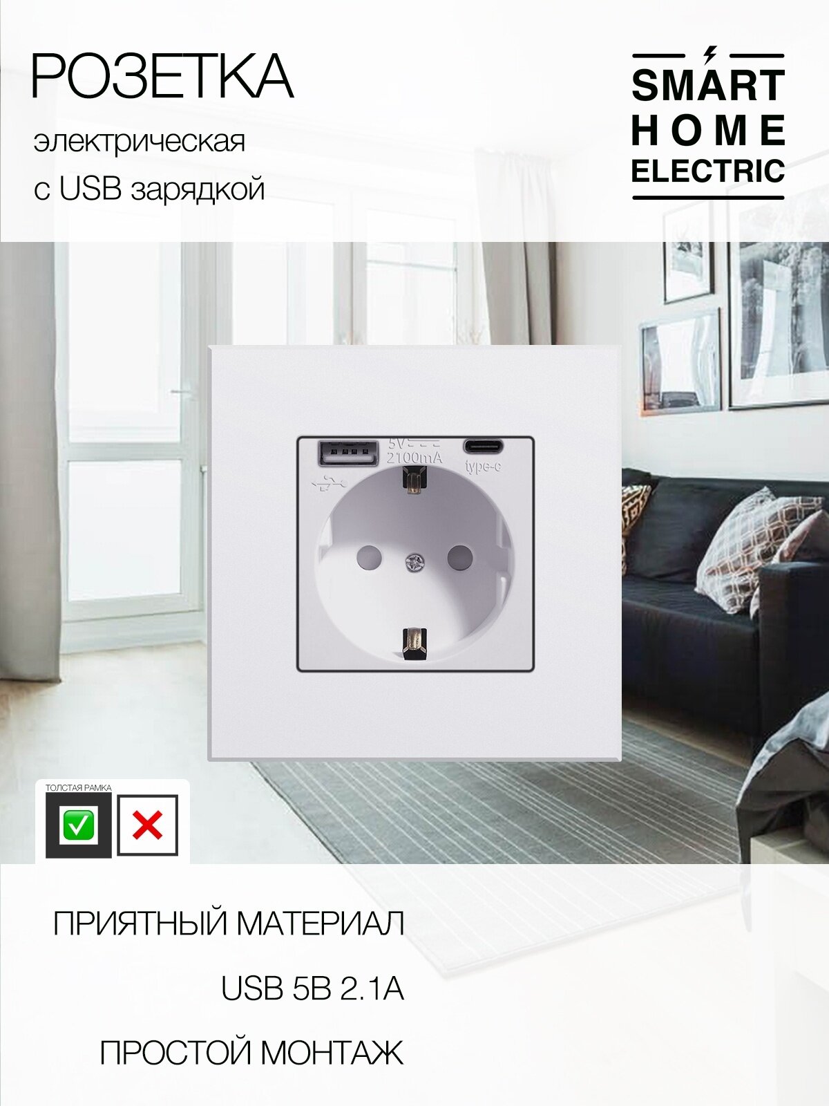 Розетка, на 1 пост, с ABS рамкой (электрическая с USB-AC) белая: сравнение цен, характеристики, фото, актуальное наличие и цены.