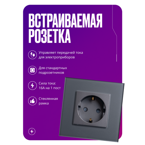 Купить Розетка одинарная на 1 пост 16A, встраиваемая в стеклянной рамке серого цвета с доставкой по всей России. Розетка одинарная на 1 пост 16A, встраиваемая в стеклянной рамке серого цвета: сравнение цен, характеристики, фото, актуальное наличие и цены.