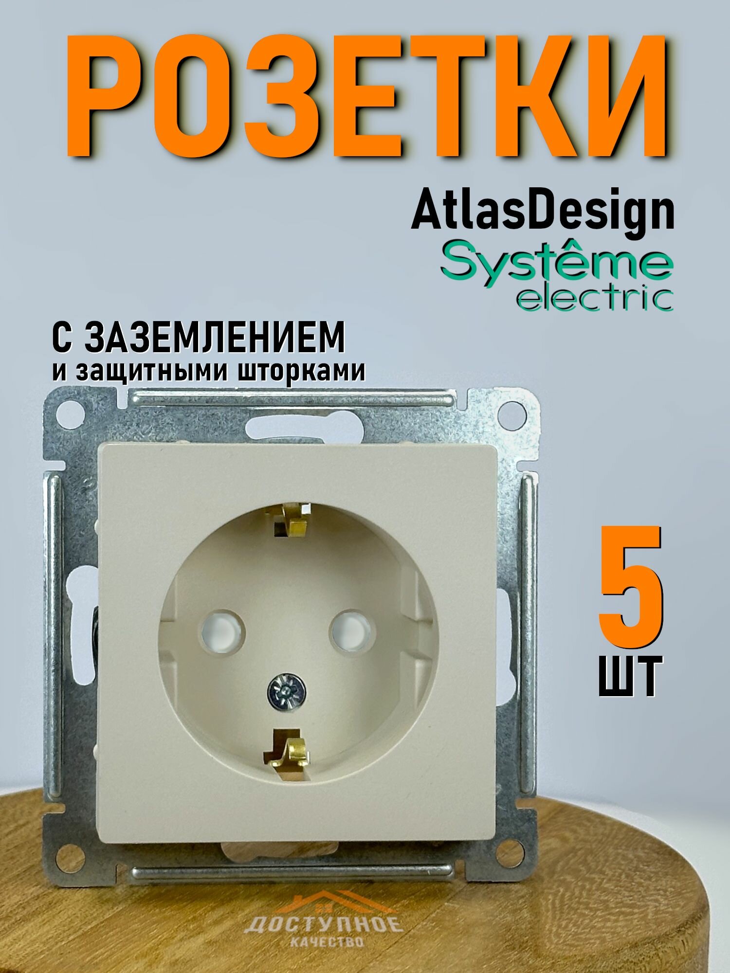 Розетка с заземлением и шторками Systeme (Schneider) Electric AtlasDesign 16А песочный, комплект 5шт. механизм ATN001245: сравнение цен, характеристики, фото, актуальное наличие и цены.