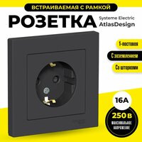 Розетка 1-м СП AtlasDesign 16А IP20 с заземл. защ. шторки в сборе карбон SchE ATN001044( 5 шт.): сравнение цен, характеристики, фото, актуальное наличие и цены.
