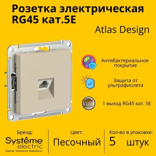 Купить Розетка одноместная компьютерная электрическая Systeme Electric Atlas Design RJ45 кат.5E, Песочный ATN001283 — 5 шт. с доставкой по всей России.