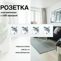 Розетка, рамка из стекла, 4 поста (электрическая с USB-AC): сравнение цен, характеристики, фото, актуальное наличие и цены.