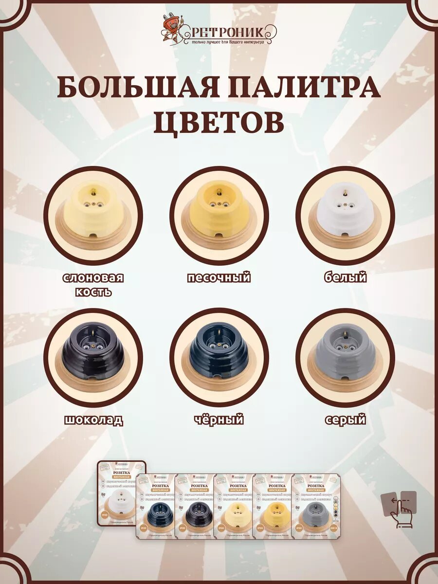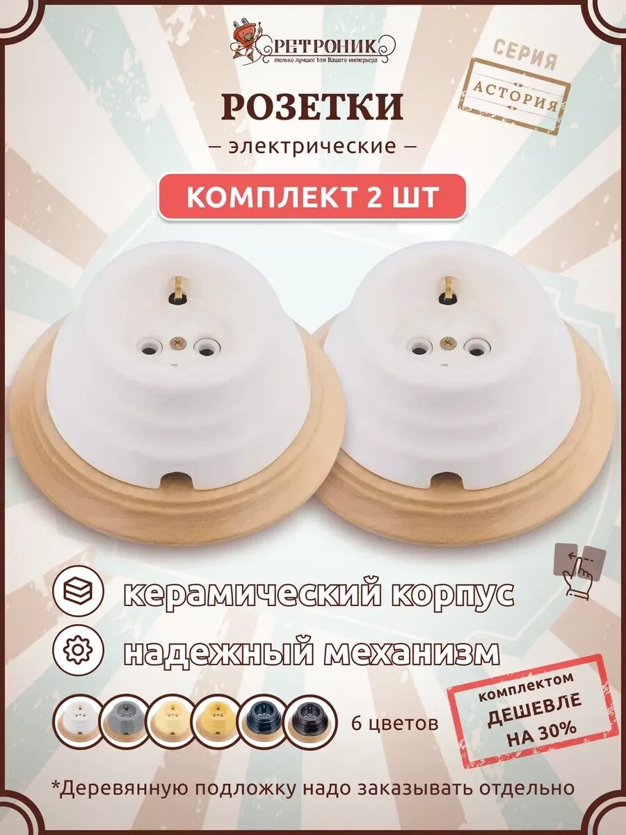 Розетка ретро керамическая с заземлением, комплект белый 2 шт, Астория: сравнение цен, характеристики, фото, актуальное наличие и цены.