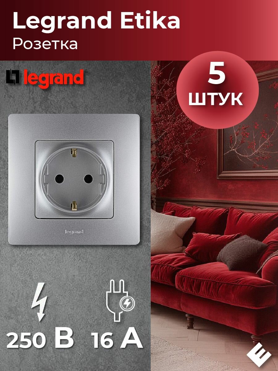 Купить Розетка с заземлением (Алюминий) Legrand Etika (комплект 5шт) с доставкой по всей России. Розетка с заземлением (Алюминий) Legrand Etika (комплект 5шт): сравнение цен, характеристики, фото, актуальное наличие и цены.
